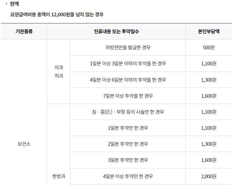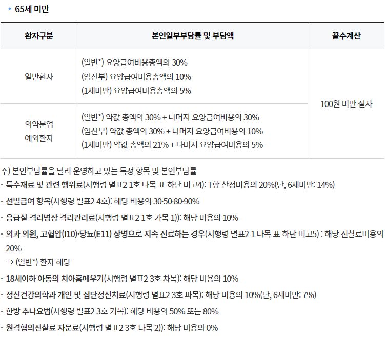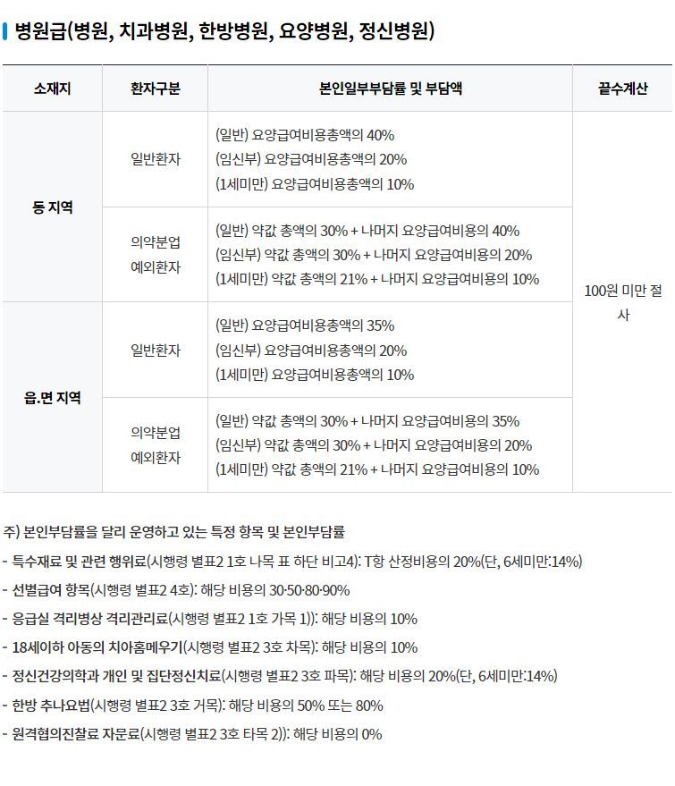 국민건강보험 본인부담기준: 본인부담률 및 부담액 본문