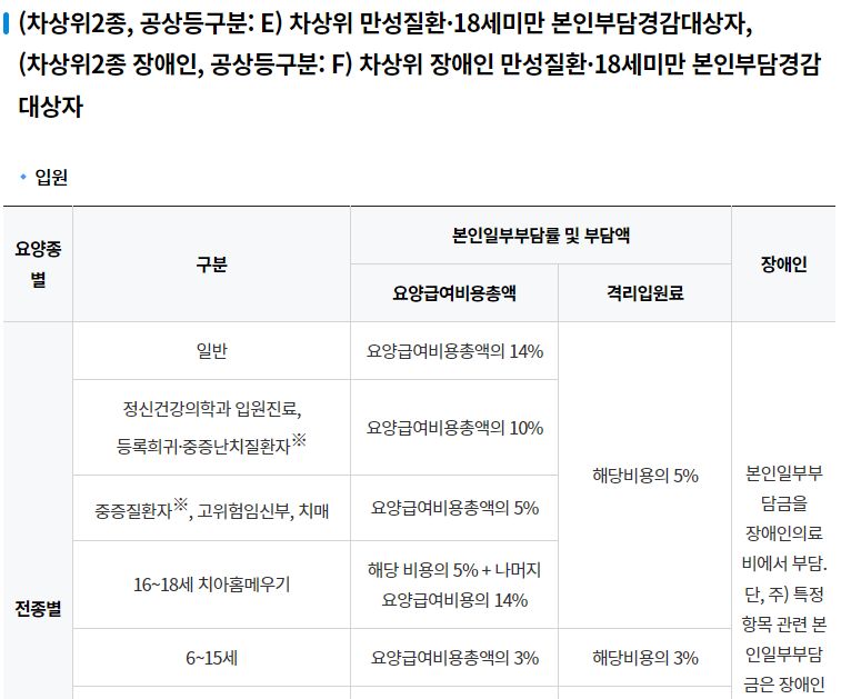 (차상위2종, 공상등구분:E) 차상위 만성질환/18세미만 본인부담경감대상자,