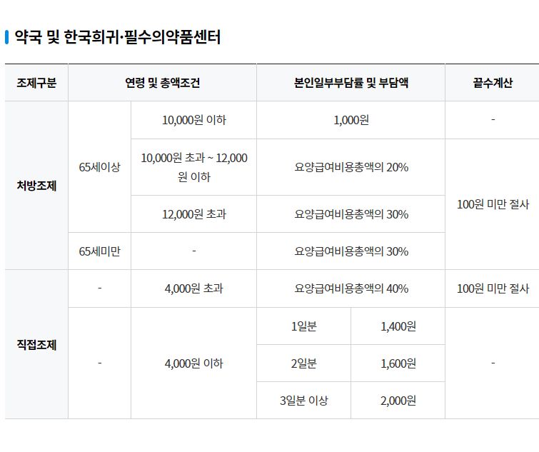 약국의 처방조제 본인부담률도 65세 이상과 미만이 구별됩니다.