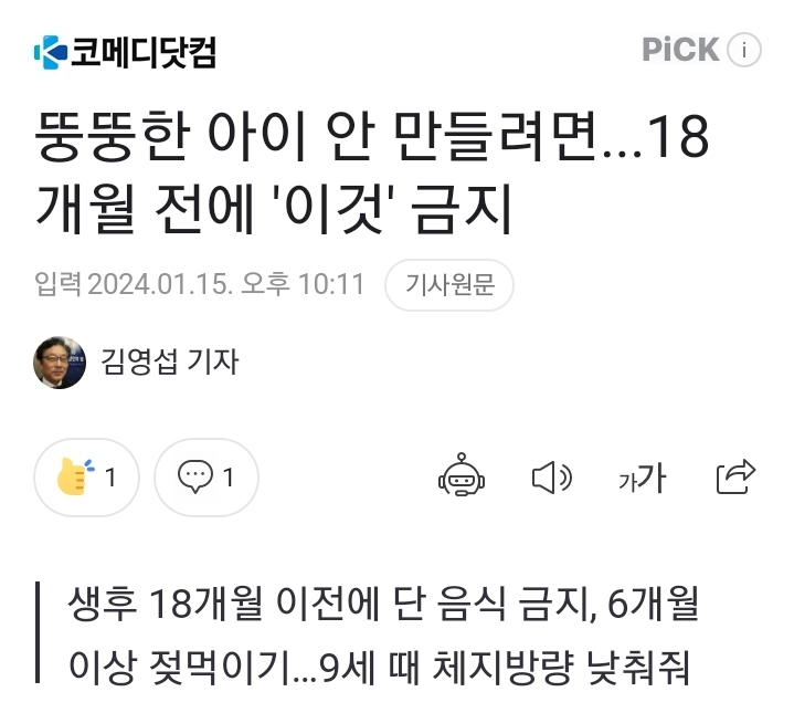 뚱뚱한 아이 안 만들려면...18개월 전에 '이것' 금지