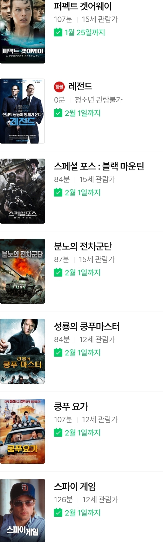 | (네이버 시리즈온 무료영화) 레전드, 스페셜 포스:블랙 마운틴, 분노의 전차군단, 배틀로얄(무삭제), 배틀로얄2- 레퀴엠 등 (0) | 2024.01.26 |