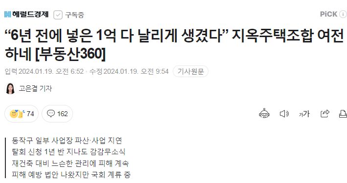 지역주택조합사업, 재건축대비 느슨한 관리에 피해 계속 (헤럴드경제)