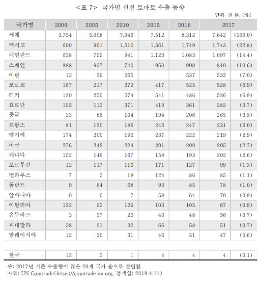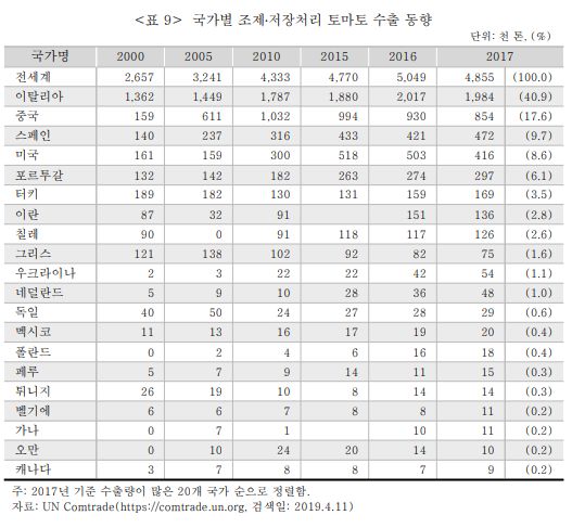 (세계 토마토 생산 및 교역 동향 - 신유선/ 한국농촌경제연구원)
