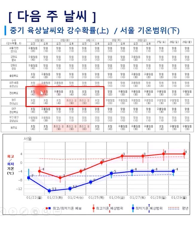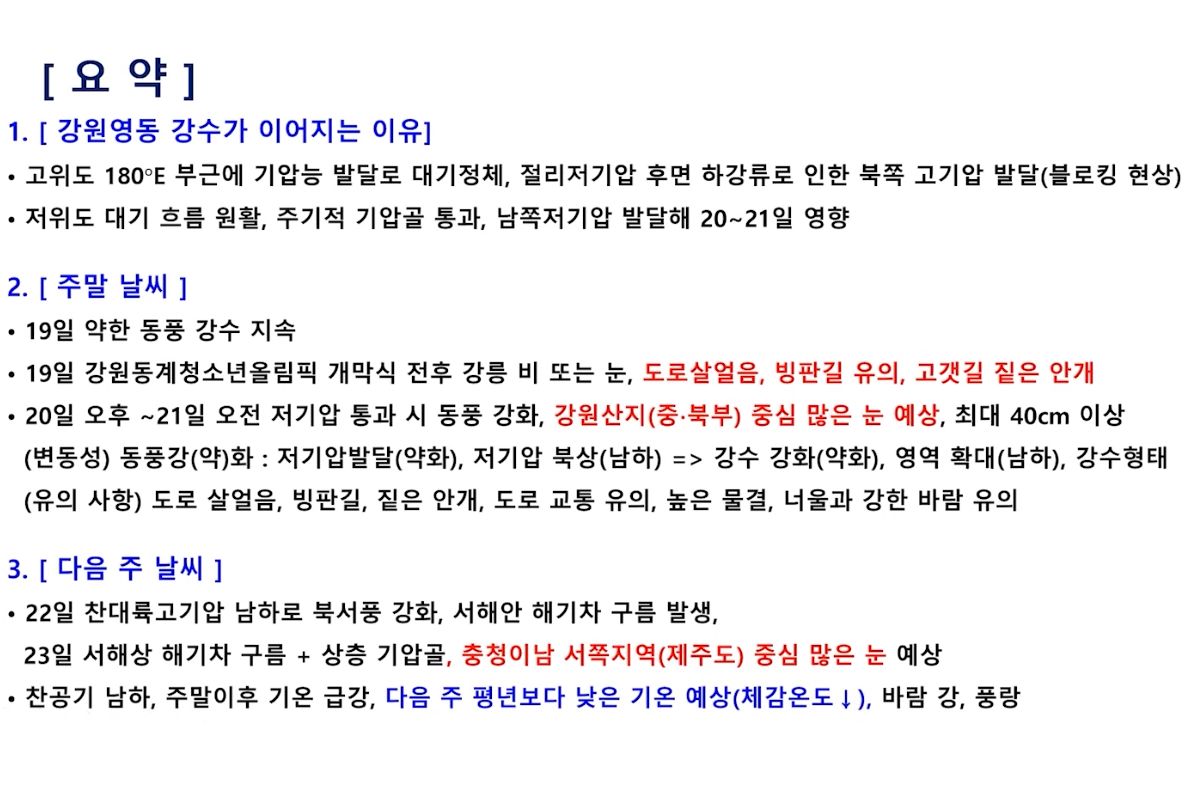 주말 강원영동 대설! 제주도 호우! 다음주 강추위! (2024.1.19)