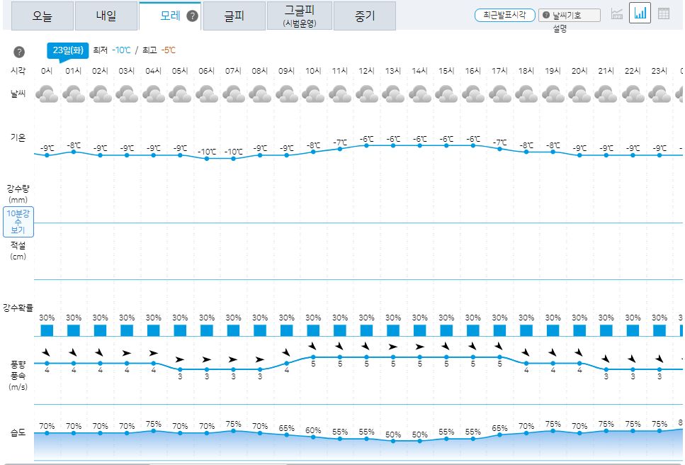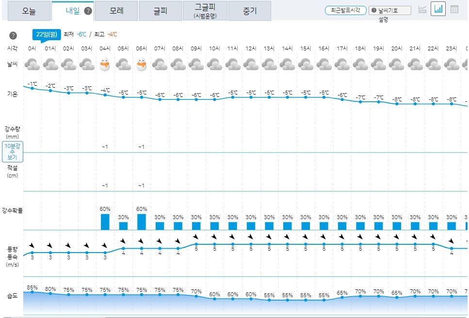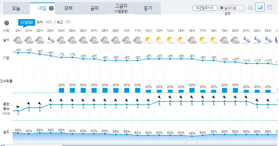 내일 아침 최저기온은 체감으로 영하 10도에 가까운 도시지역도 꽤 있다고 합니다.