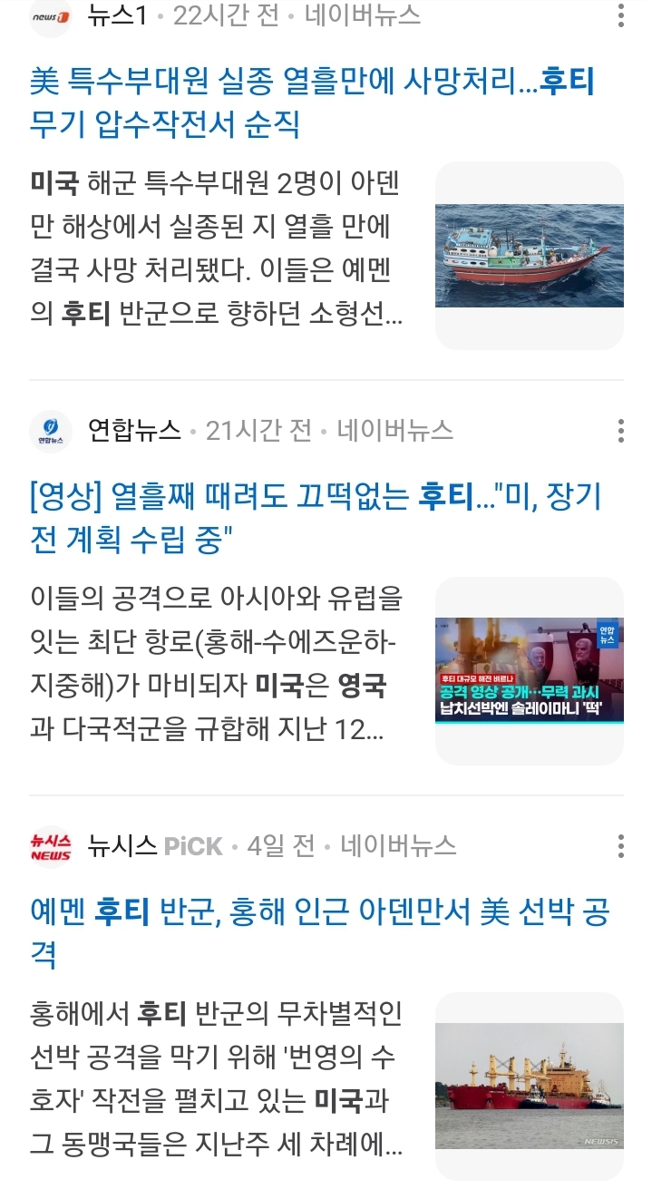 예멘 후티 반군, 홍해 인근 아덴만서 美 선박 공격