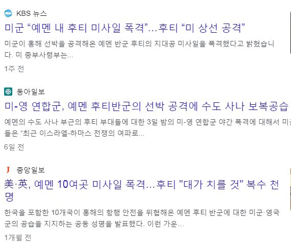 이들이 "이스라엘을 돕는 세계는 망해야 한다"는 식으로, 홍해 물류통로를 봉쇄할 의도로 미사일과 로켓을 쏴대는 통에, 화물선들이 맞고 다니거나 희망봉루트로 항로를 바꾸고 있죠. 그래서 아덴만에서 해적대응하던 국제함대를 이쪽으로 돌리려 하고 요즘 미국과 영국이 예멘을 폭격 중입니다.
