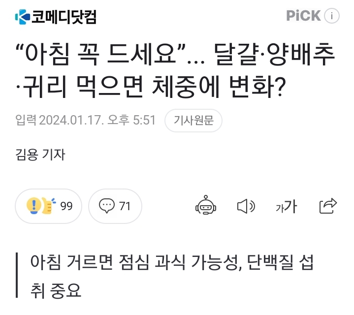 지방간 경고: 아침을 잘 먹고 채소 많이 먹어라 본문