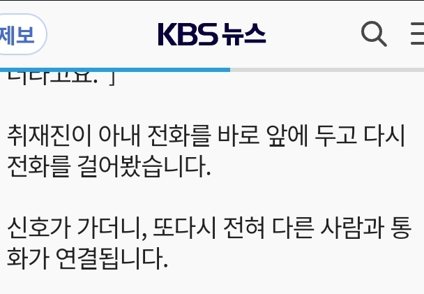 기자가 자신의 전화기로 제보자 부인에게 걸어본 것인지 아니면 제보자의 전화기로 제보자 부인에게 걸어본 것인지는 기사만 봐서는 잘 모르겠네요.