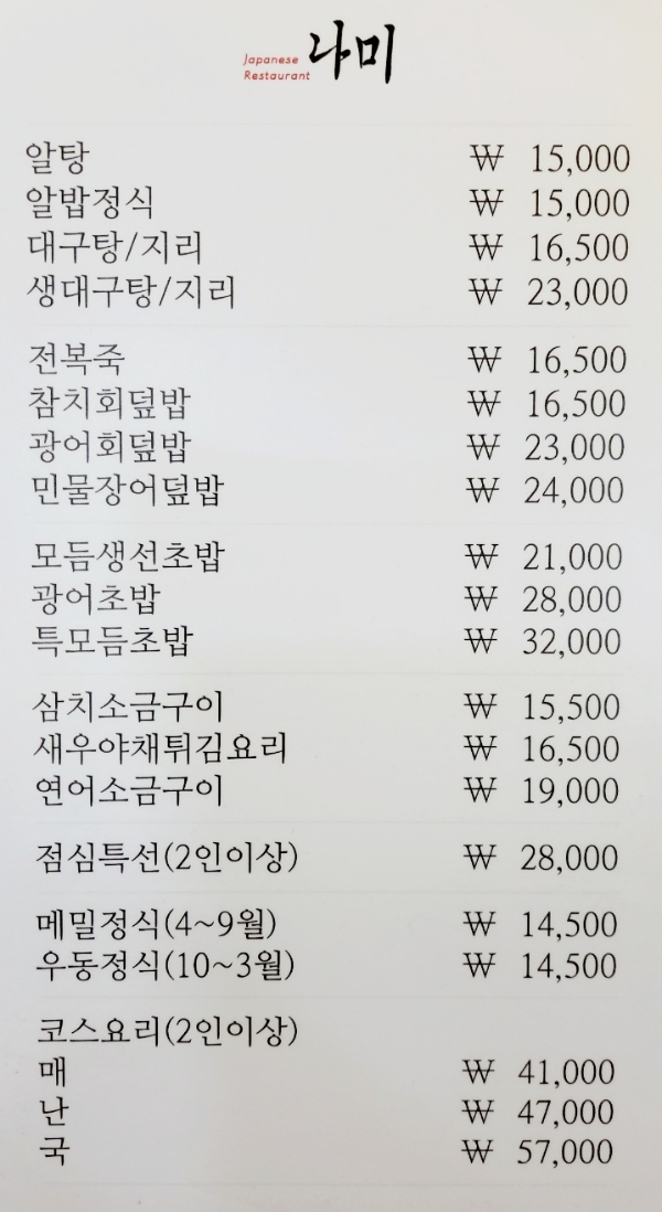 나미: 회, 초밥 등