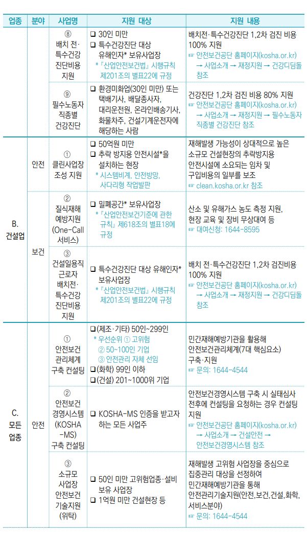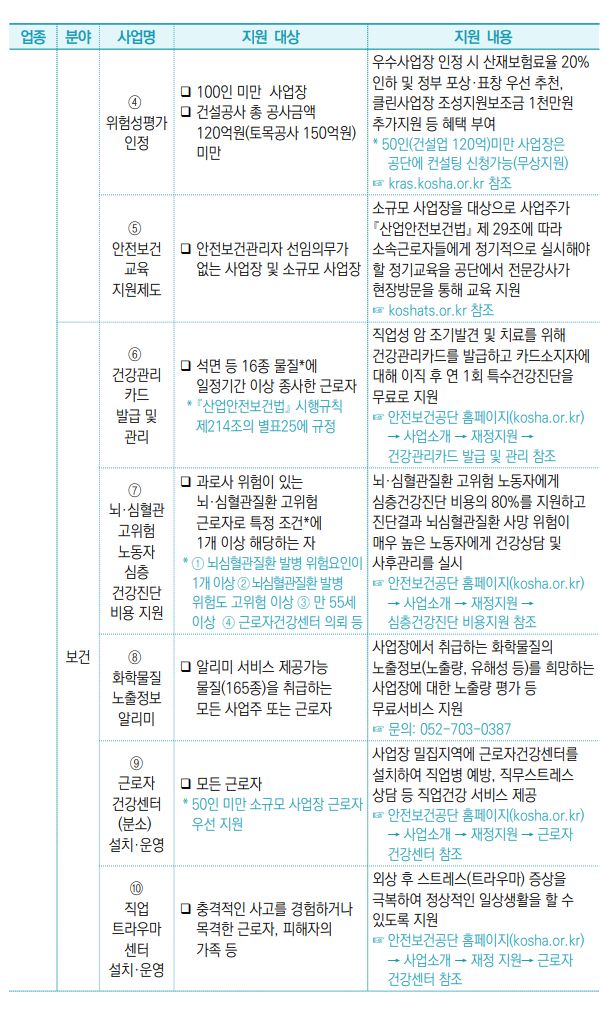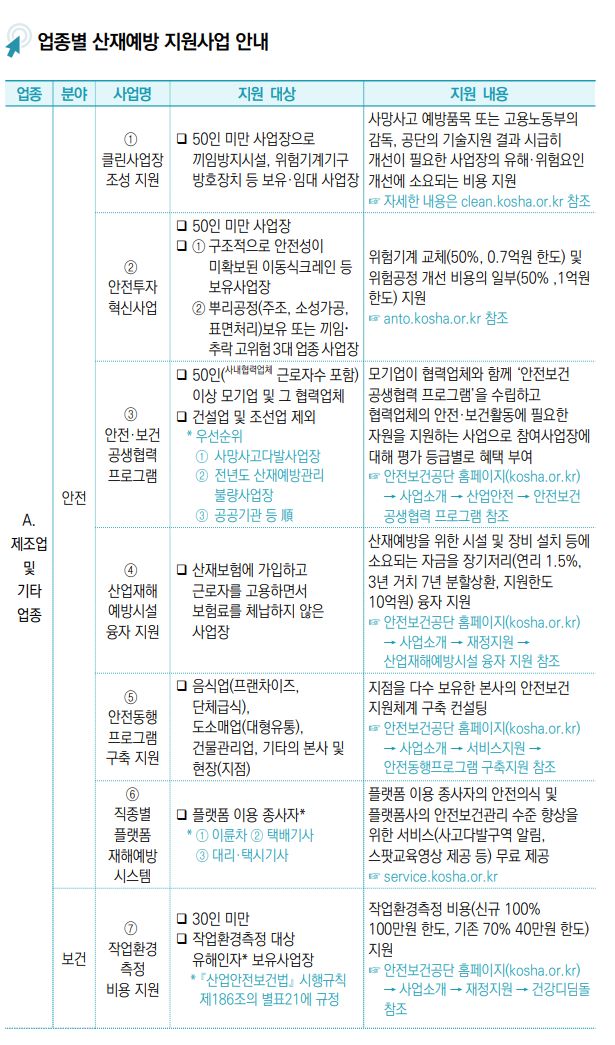 Ⅴ. 산재예방을 위한 정부 지원사업 ········································ 119