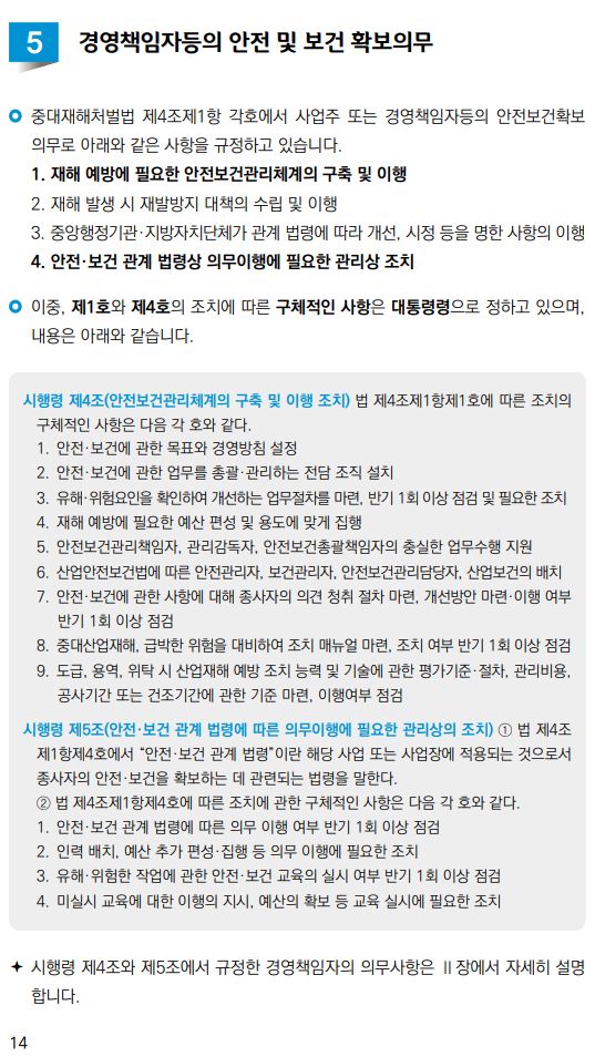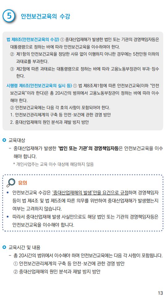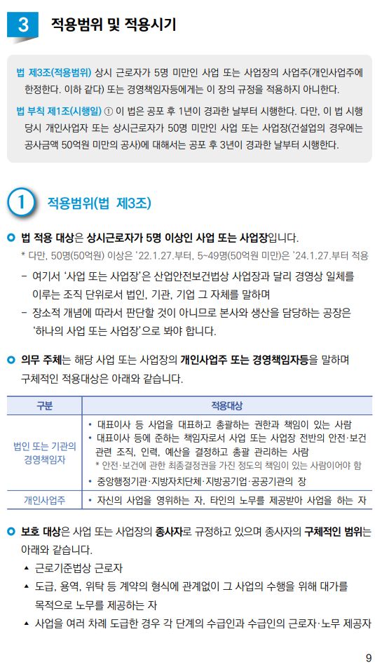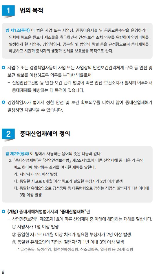 이번 안내서는 중대재해처벌법 주요 조문 순서에 따라 조문의 제정 취지와