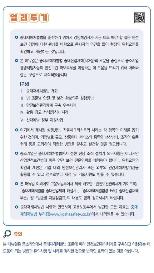 중대재해처벌법 따라하기 안내서 PDF파일 (고용노동부, 2022)/:/ 중대재해 사고백서: 2023 아직 위험은 끝나지 않았다 (고용노동부 2023) 본문