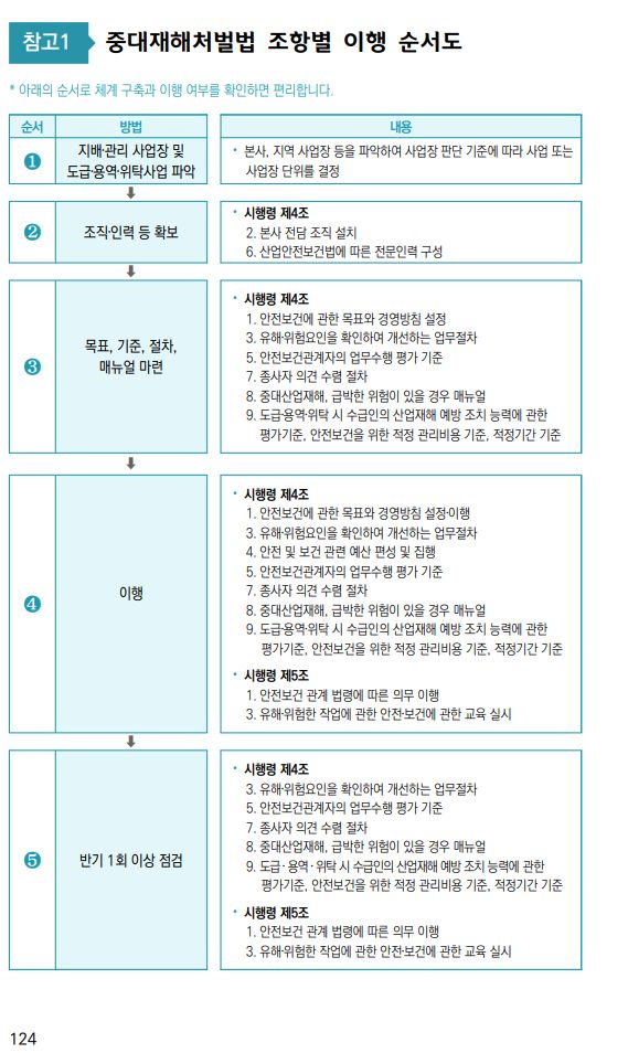 1. 중대재해처벌법 조항별 이행 순서도 ····························124