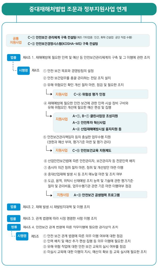 중대재해처벌법 조문과 정부지원사업연계 (2022년)