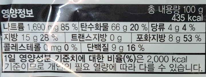 열량은 일반 라면보다는 좀 적죠. 435칼로리. 100그램이란 용량도 그렇고.