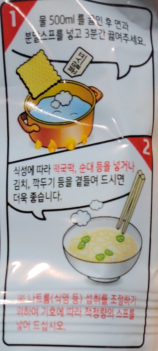 뽀얀 흰 국물입니다. 사골국물맛 분말스프가 있다면 이거겠죠. 속을 부드럽게 감싸줍니다. 맵지 않아서인지 사골국물맛 스프의 특징인지 MSG맛은 상당히 강한 편.