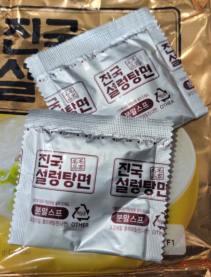 백제쌀국수는 뜨거운 물을 부어먹는 사발면종류고, 이 진국설렁탕면은 끓여먹는 라면. 열량은 이쪽이 더 많습니다.