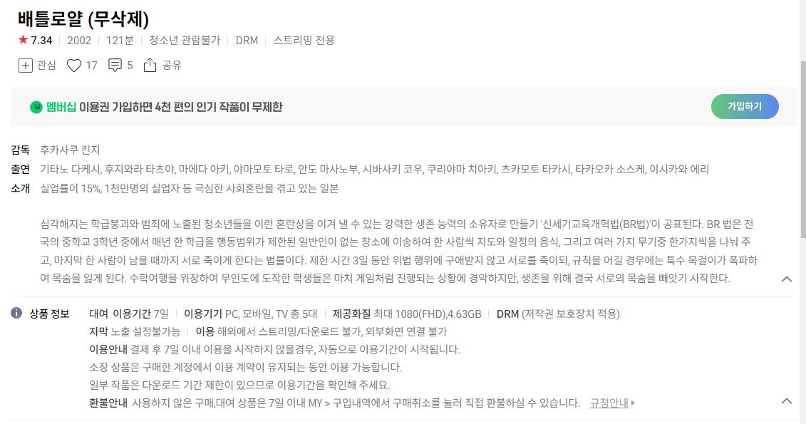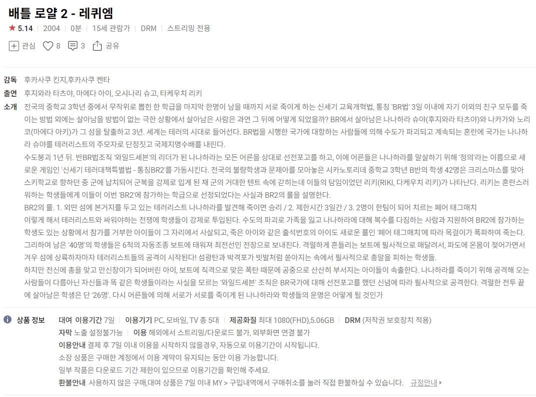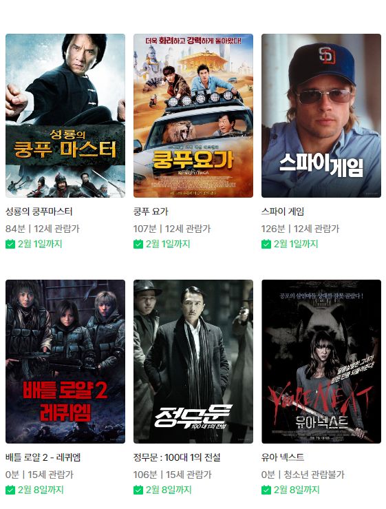 | (네이버시리즈온 무료영화) 배틀 로얄 1, 2, 정무문:100대 1의 전설 등 (0) | 2024.02.02 |