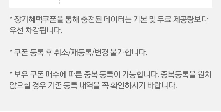 ㅡ 장기혜택쿠폰은 기본 및 무료제공량보다 먼저 차감됩니다.