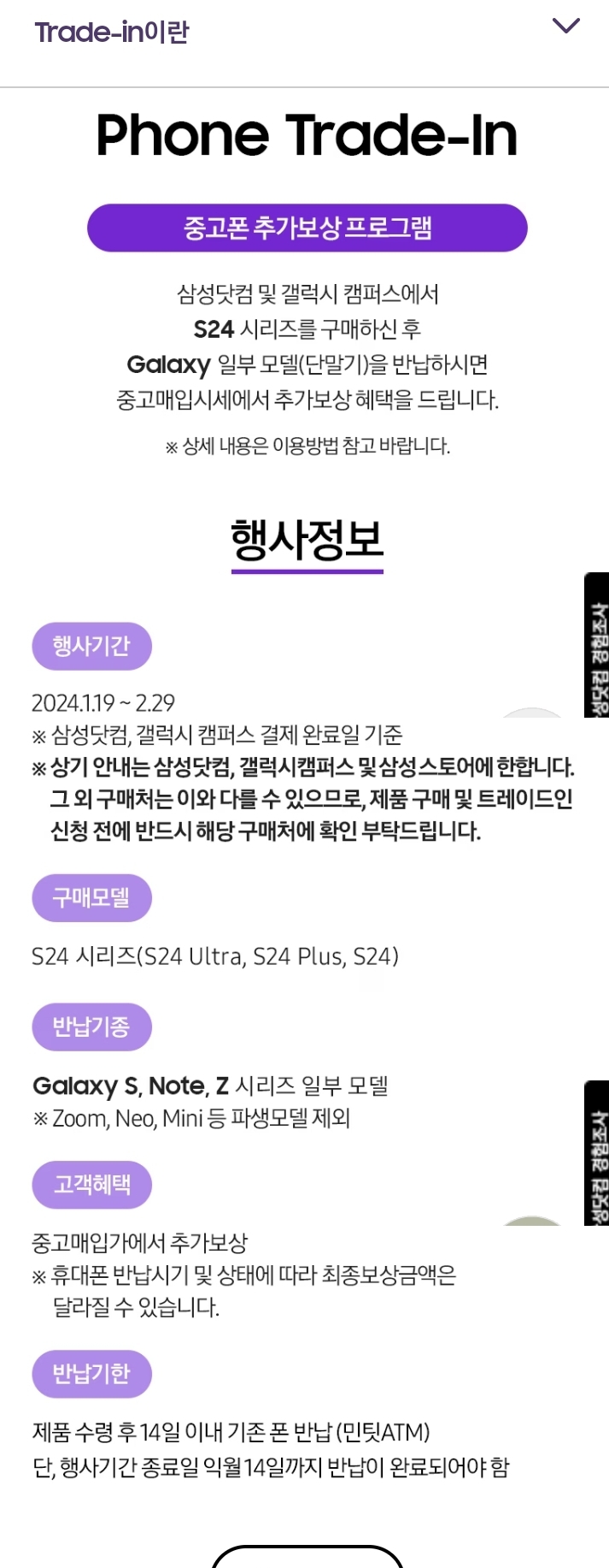 삼성전자 갤럭시S24, 중고폰 보상프로그램(Phone Trade-In) 본문