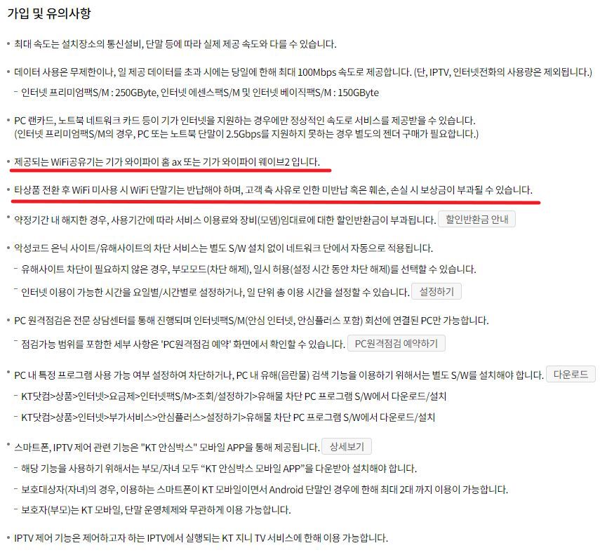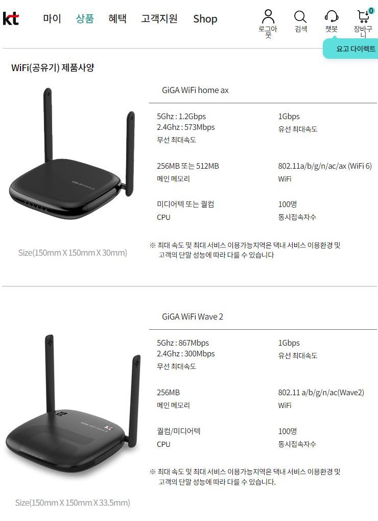 요즘 KT인터넷서비스상품 메모: 출동비, 공유기 사양 본문