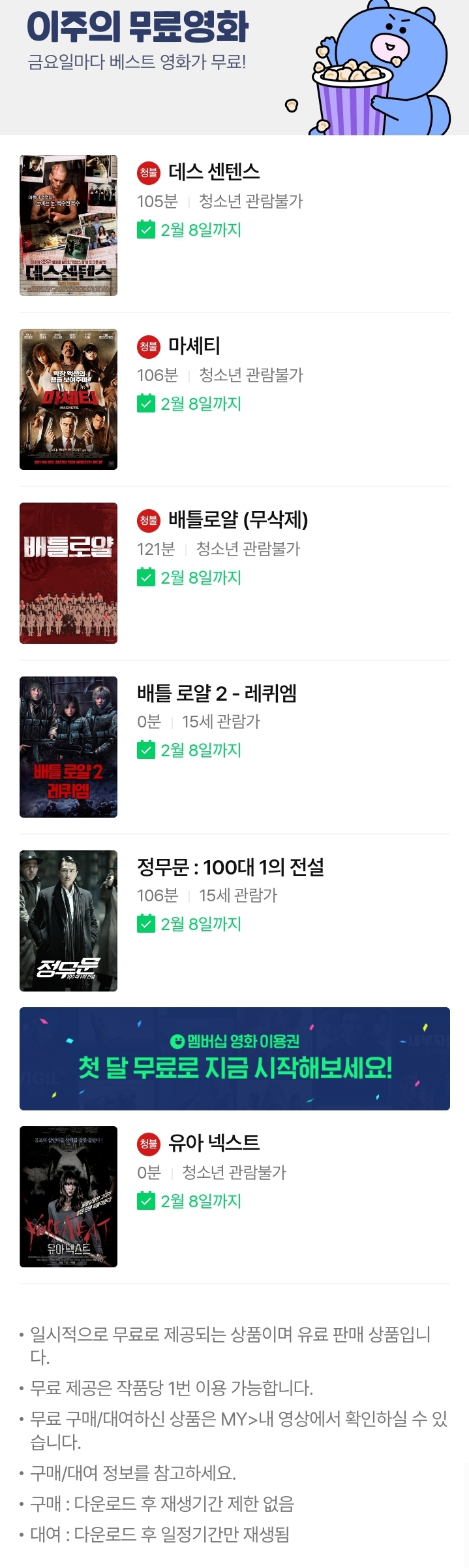 | (네이버 시리즈온 무료영화) 레전드, 스페셜 포스:블랙 마운틴, 분노의 전차군단, 배틀로얄(무삭제), 배틀로얄2- 레퀴엠 등 (0) | 2024.01.26 |