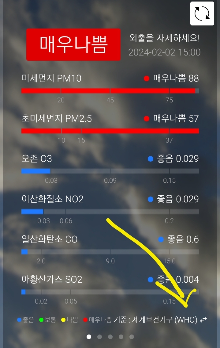 세계보건기구기준 둘 다 나쁨.
