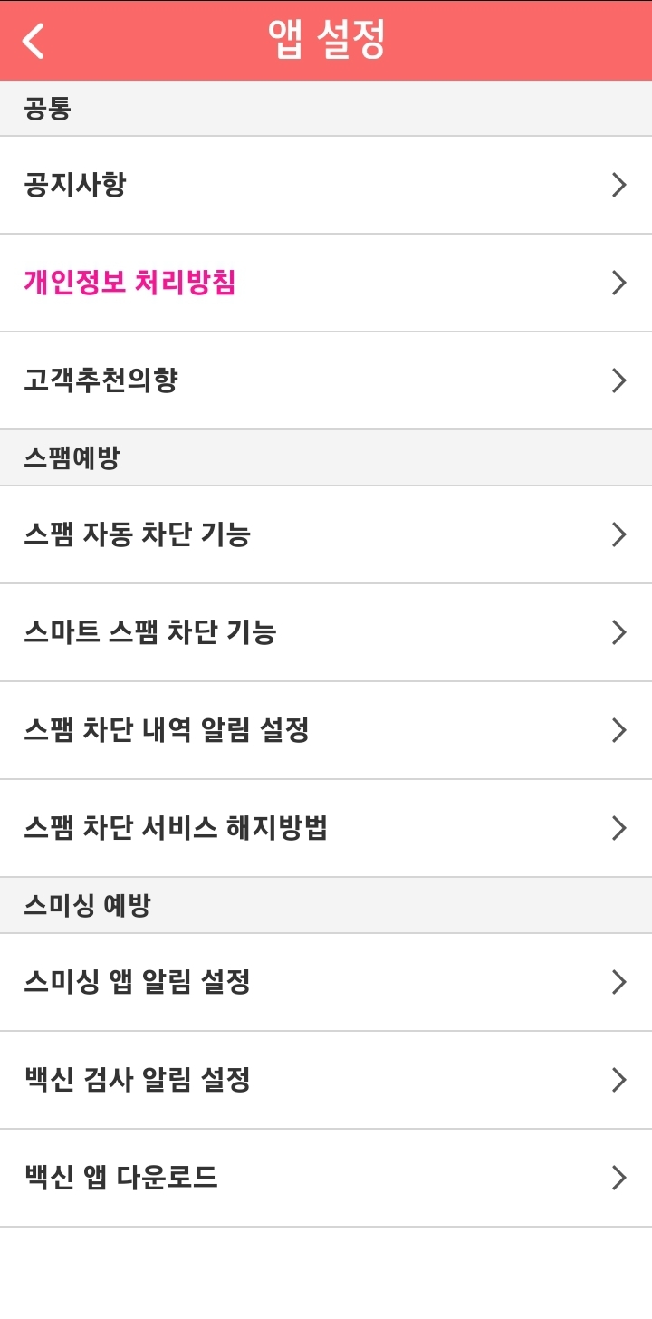 스팸차단앱 설정화면