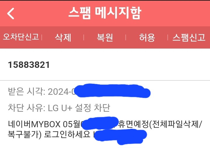 오차단신고, 삭제, 복원, 허용, 스팸신고같은 처리를 해줄 수 았습니다.