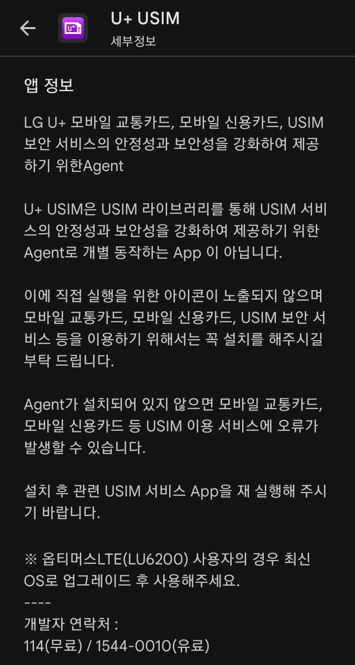 U+USIM Agent 라는 걸 또 깔라고 요구.