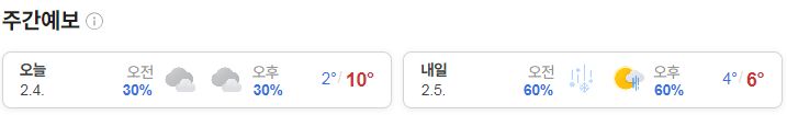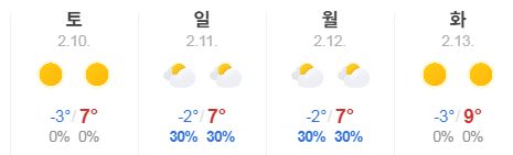 2024.2.4(일)~ 2.13(화) 설연휴까지의 날씨(일기예보) 본문