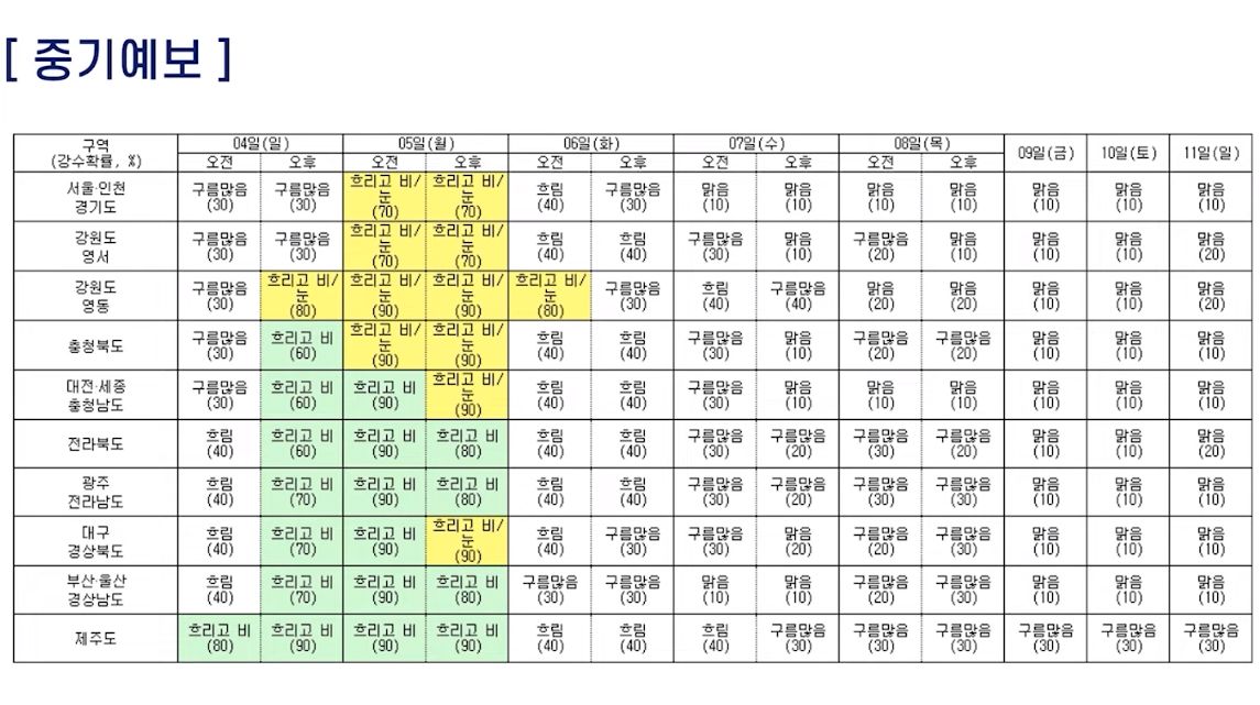 일부만 인용합니다. 토요일까지의 예보는 생략합니다.