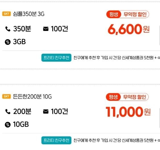 알뜰폰 저가 요금제 몇 가지 (프리텔레콤) 본문