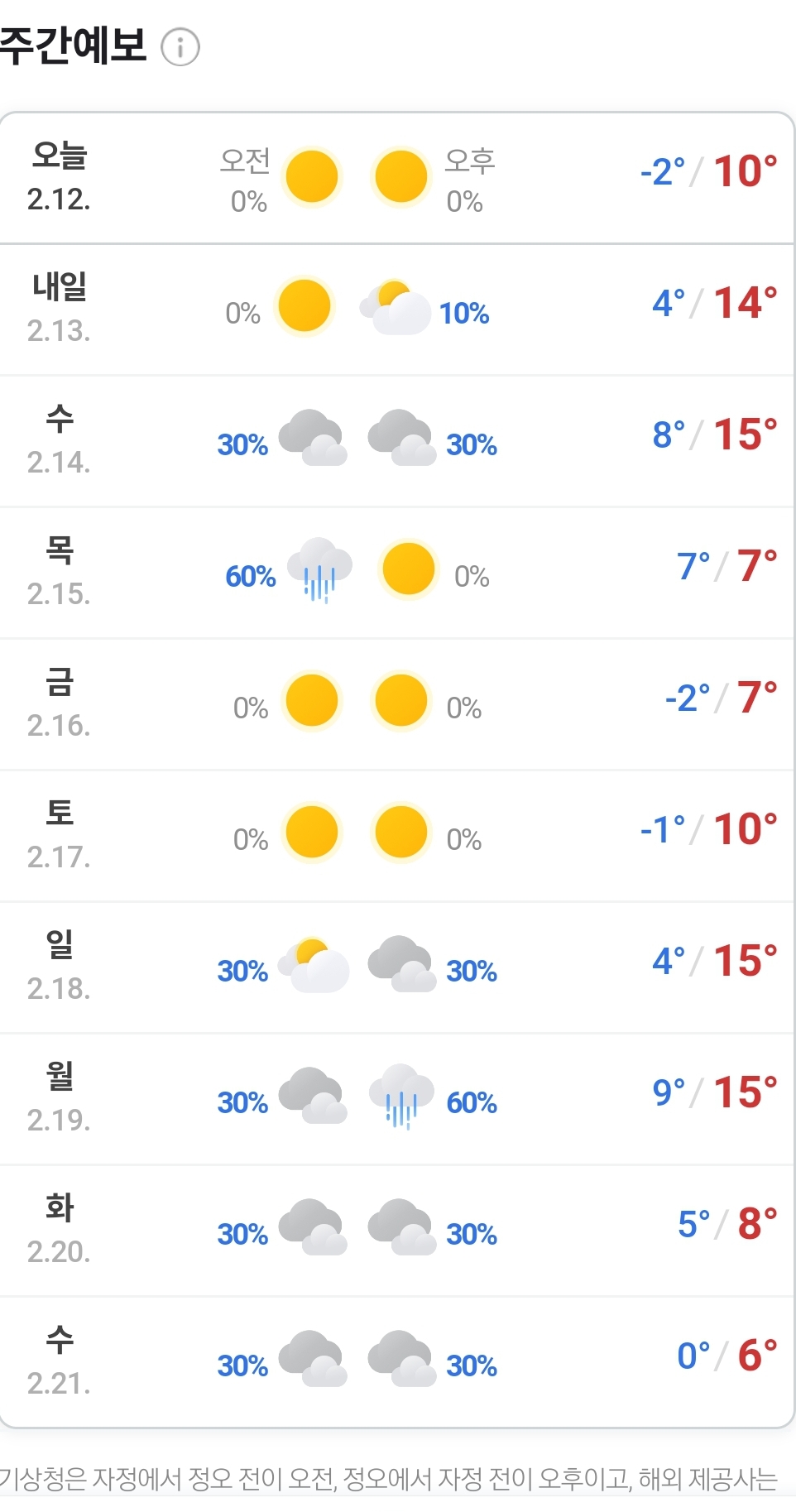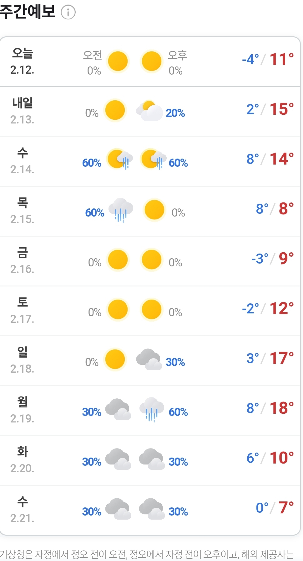 2024.2.12.(일)~ 2.21.(수). 주간 일기예보(네이버 날씨) 본문