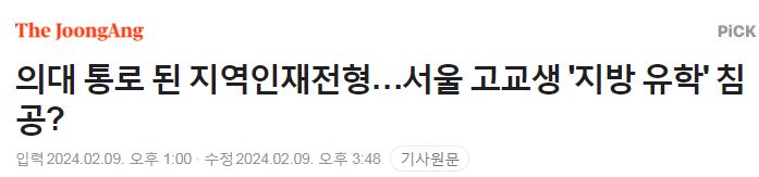 의대 통로 된 지역인재전형…서울 고교생 '지방 유학' 침공?
