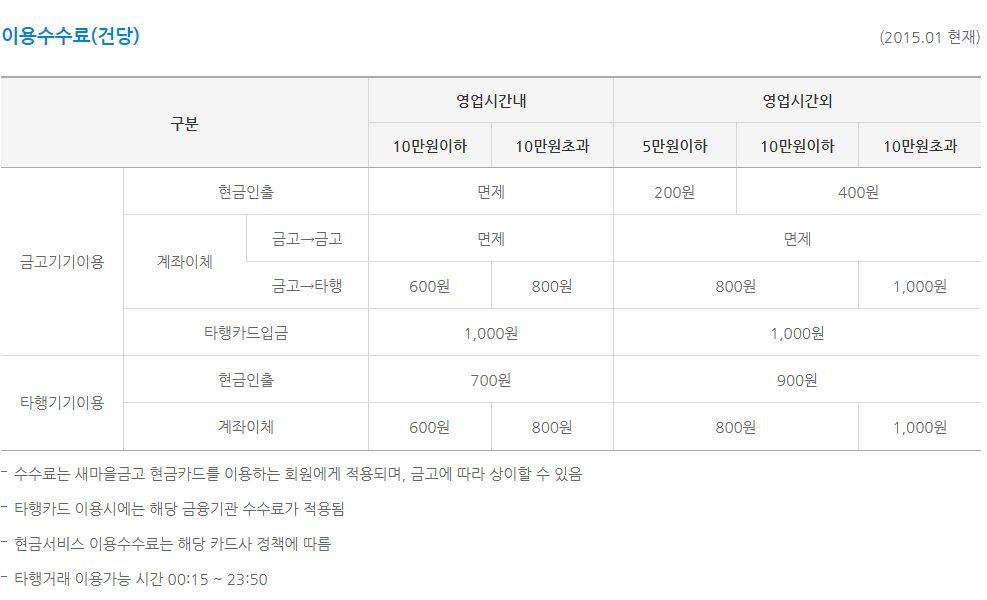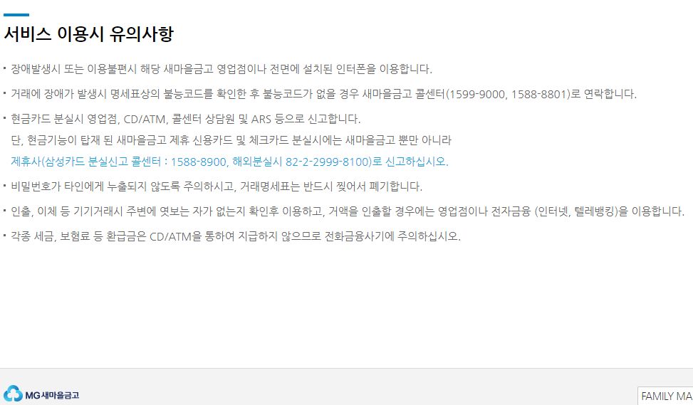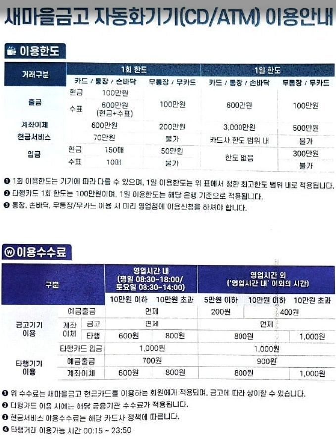 MG새마을금고 자동화기기(ATM) 사용시간 및 수수료 (2024.2.17.기준) 본문