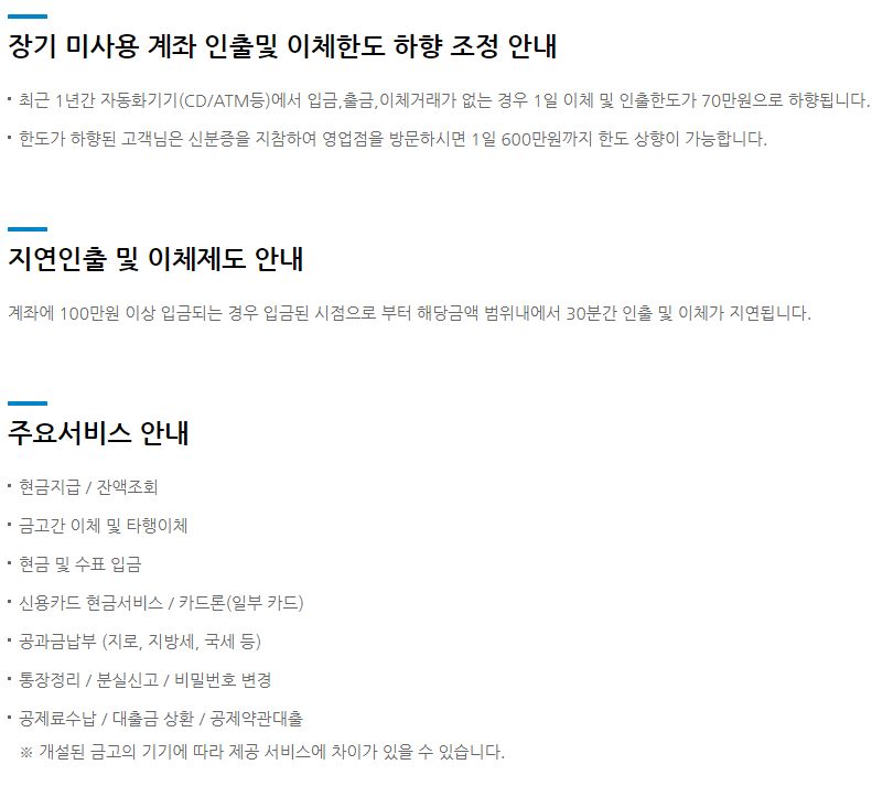 | KB국민은행 자동화기기(ATM) 이용시간과 수수료 (2024.2.17.기준) (0) | 2024.02.17 |