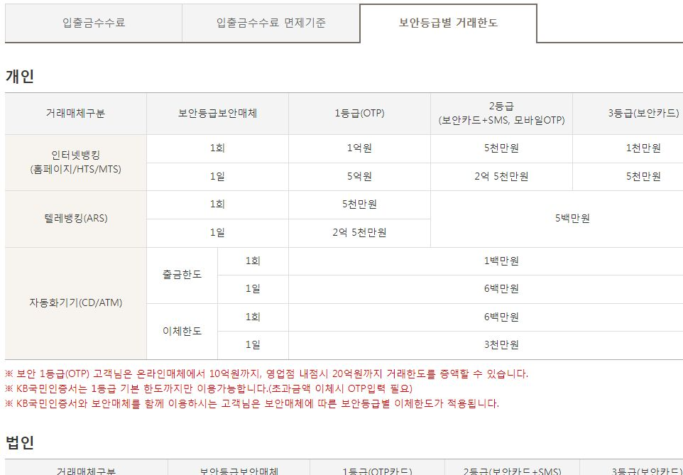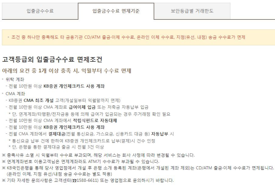 KB증권 자동화기기 이용관련, 수수료 등 (2024.2.17.기준) 본문