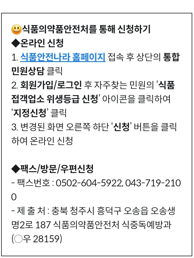 위생등급 신청이 막막하세요? 식약처의 맞춤 지원을 받아보세요