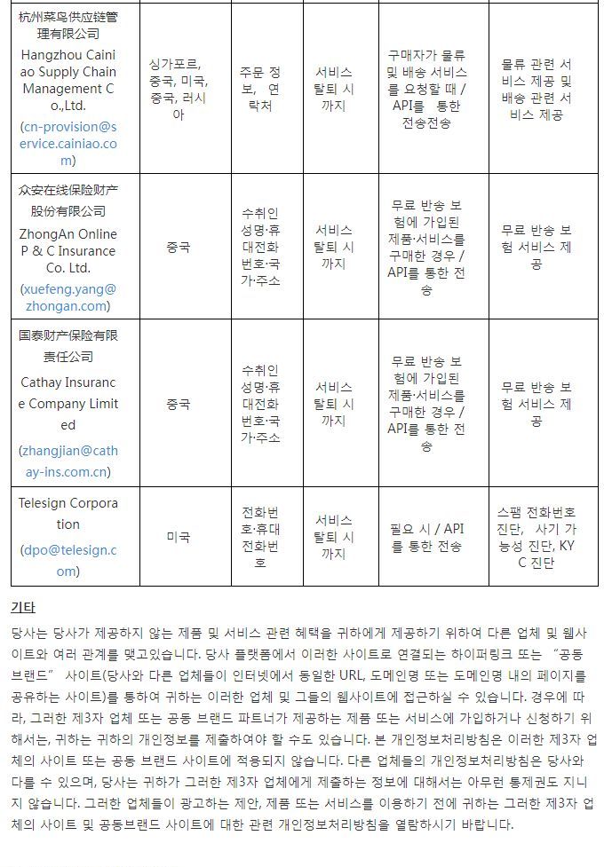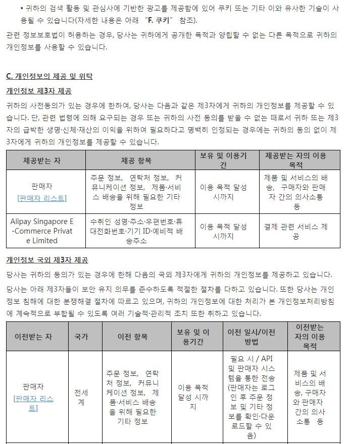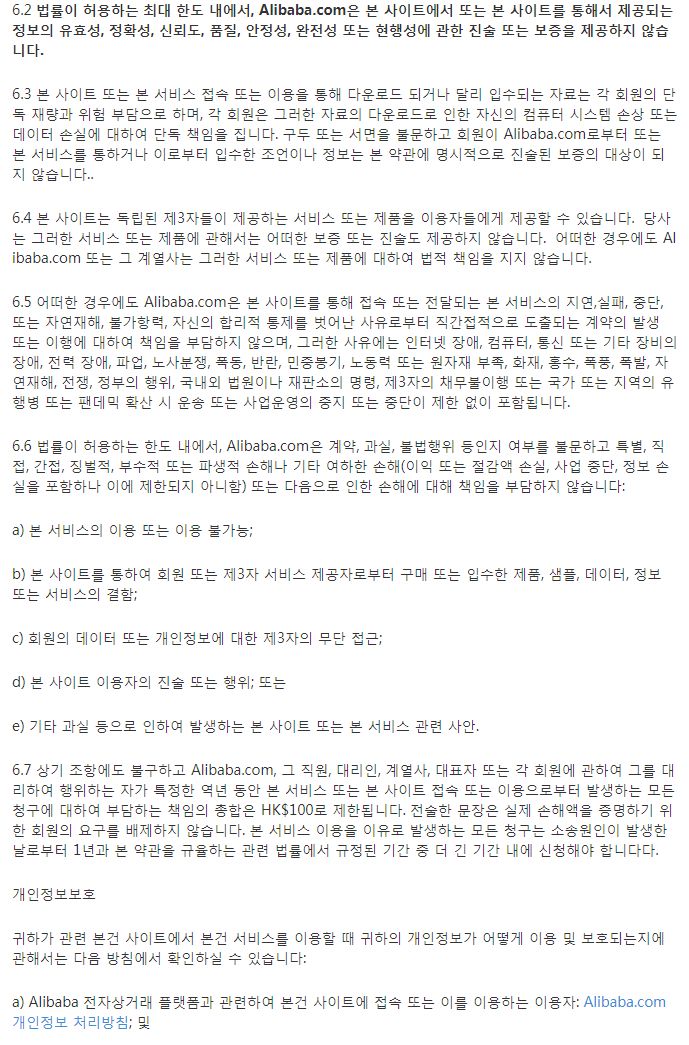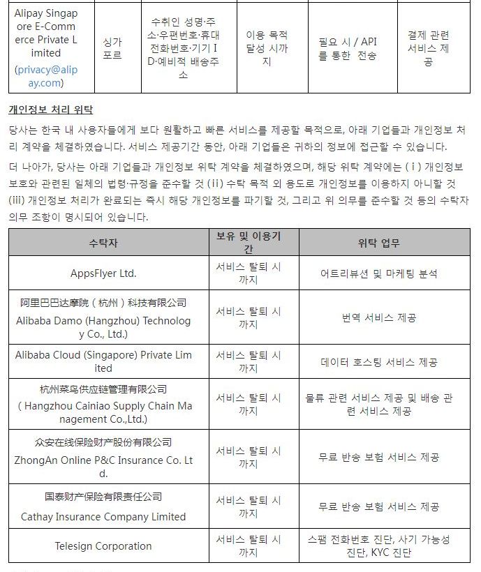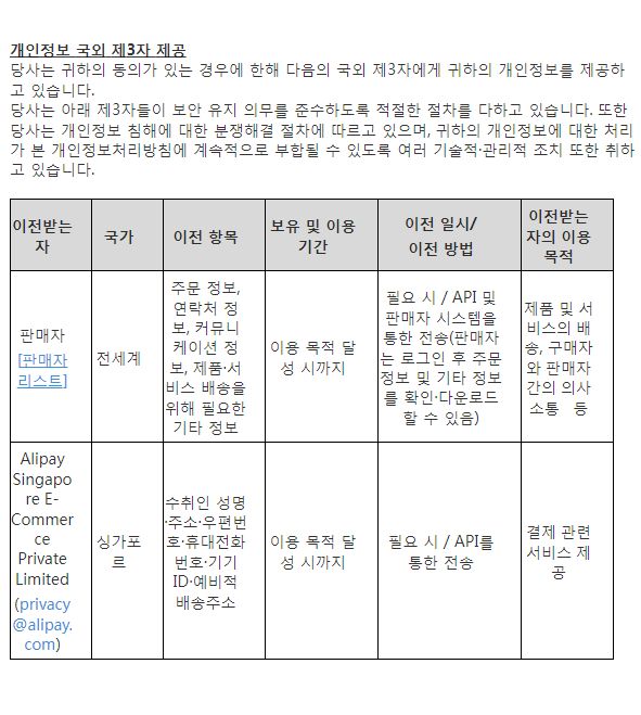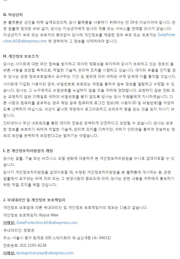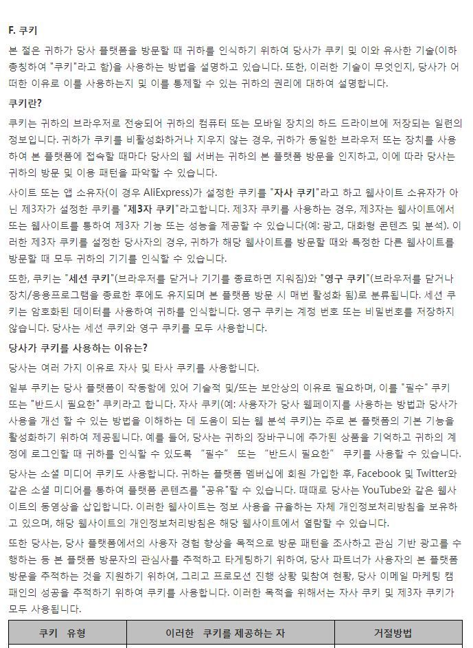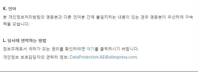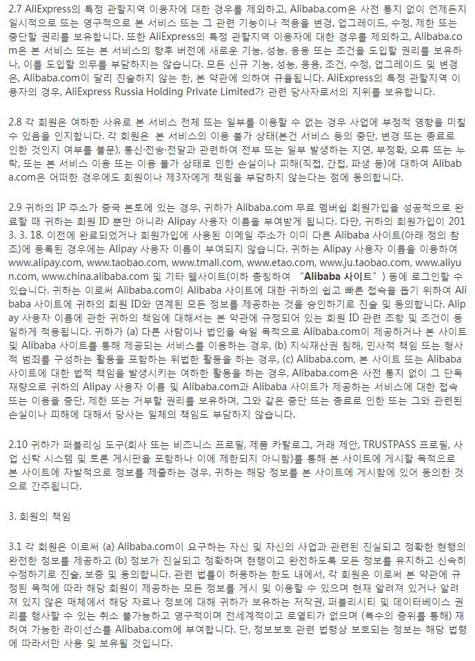 알리익스프레스( www.aliexpress.com ) 회원가입약관, 개인정보처리방침 약관 등 본문