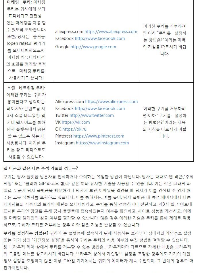 · 목적: AliExpress 플랫폼의 원활한 서비스 이용을 위한 정보