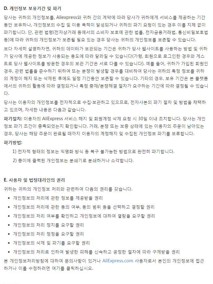 알리익스프레스는 아래와 같은 약관 동의를 받습니다.