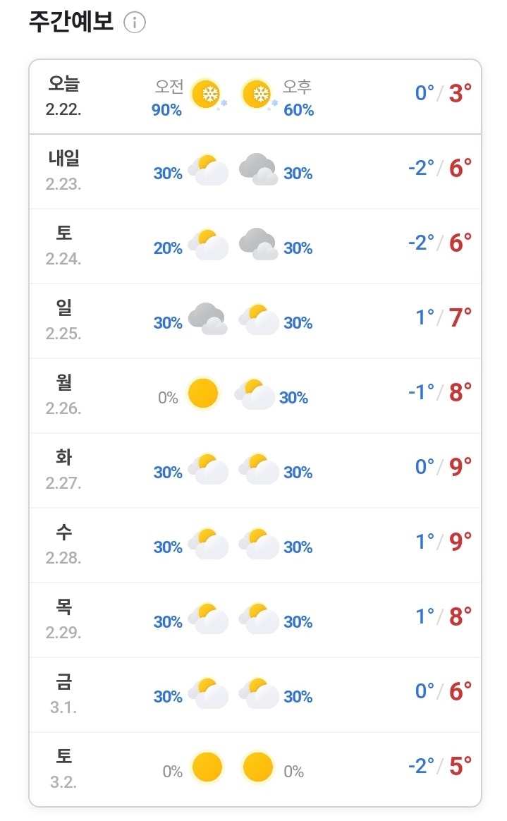 | 2024.2.12.(일)~ 2.21.(수). 주간 일기예보(네이버 날씨) (0) | 2024.02.12 |