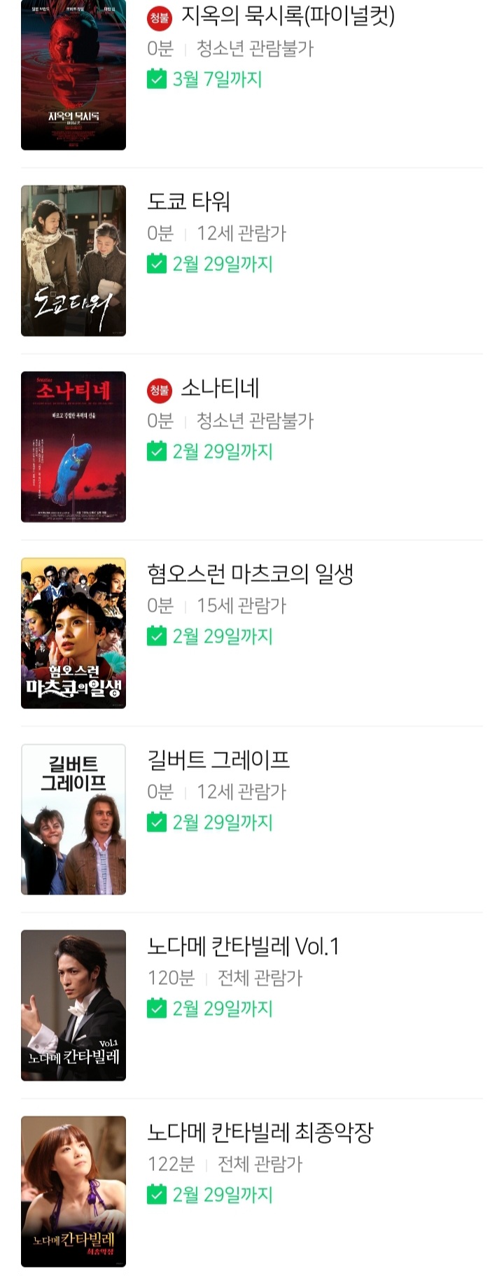 | (네이버시리즈온 무료영화) 나는 공무원이다, 도쿄 타워, 노다메 칸타빌레 Vol.1/최종악장 등 (0) | 2024.02.17 |
