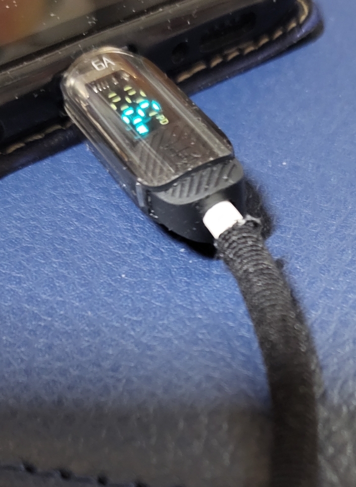 충전전류가 표시되는 케이블을 싼맛에 산 건 좋았지만, 그렇게 오래 가지는 못할지도 모르겠네요. 충전 성능은 아직 문제없습니다.
