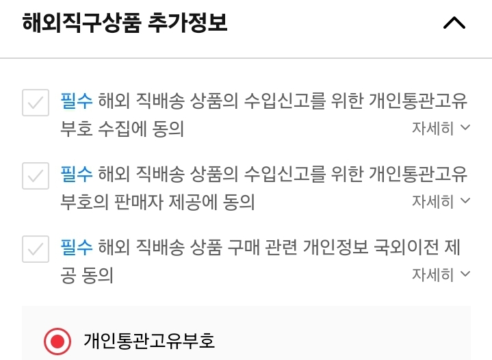 결제화면에서 요구하는 통관번호1