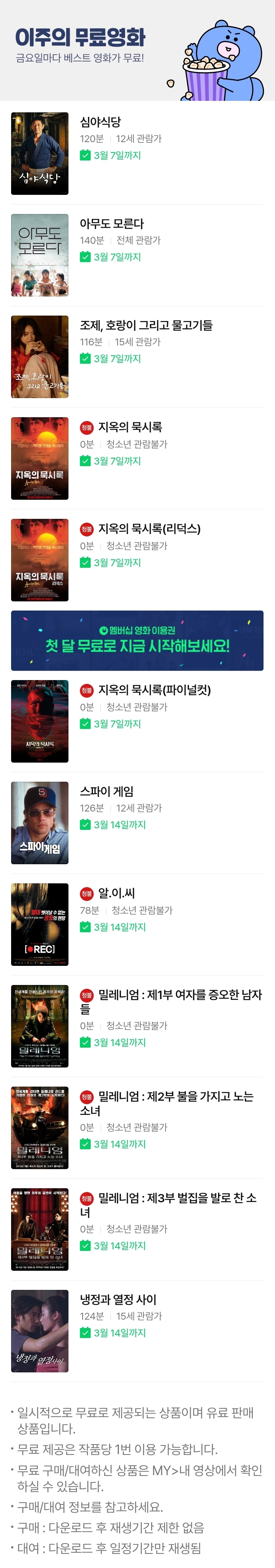 | (네이버사리즈온 무료영화) 스파이 게임, 냉정과 열정사이 등 (0) | 2024.03.08 |