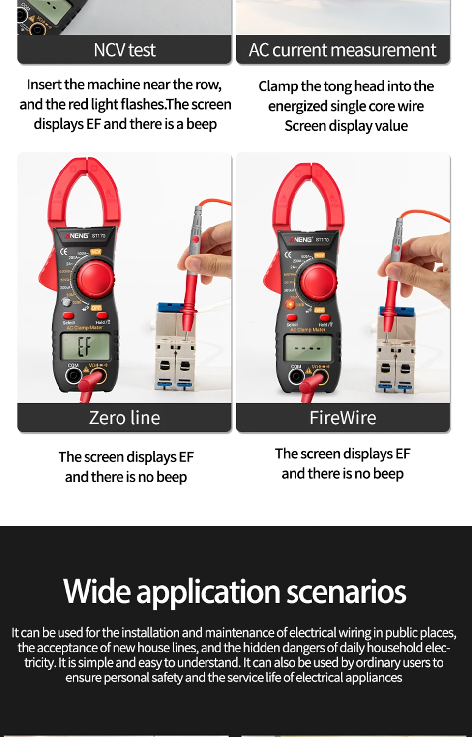 The ANENG brand was established in 2012,dedicated to the research and development,production and sales of electrical instrumentationtool accessories, with independent design andmanufacturing capabilities. Over the years, in the process of continuousdevelop