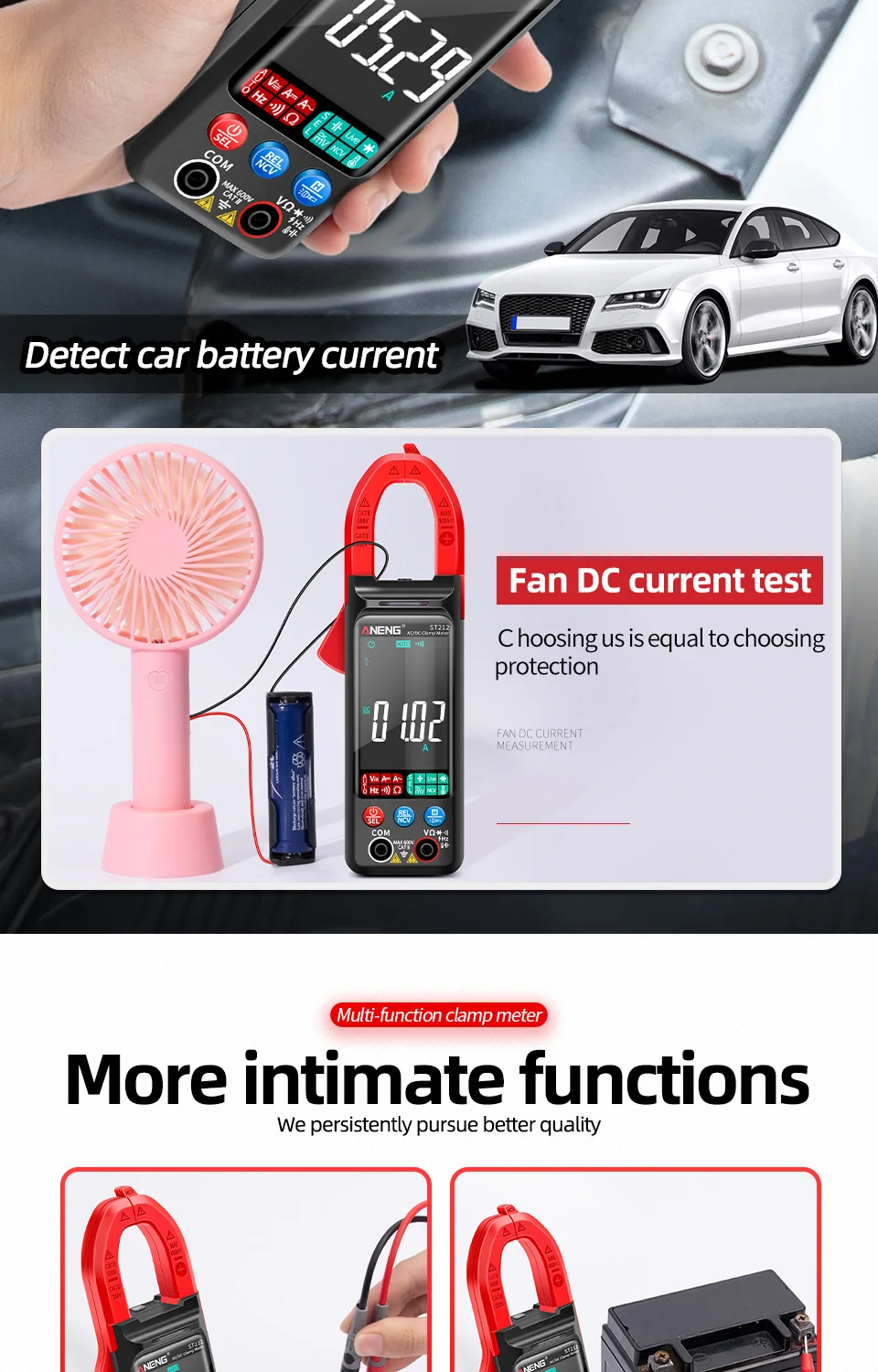 The ANENG brand was established in 2012,dedicated to the research and development,production and sales of electrical instrumentationtool accessories, with independent design andmanufacturing capabilities. Over the years, in the process of continuousdevelop
